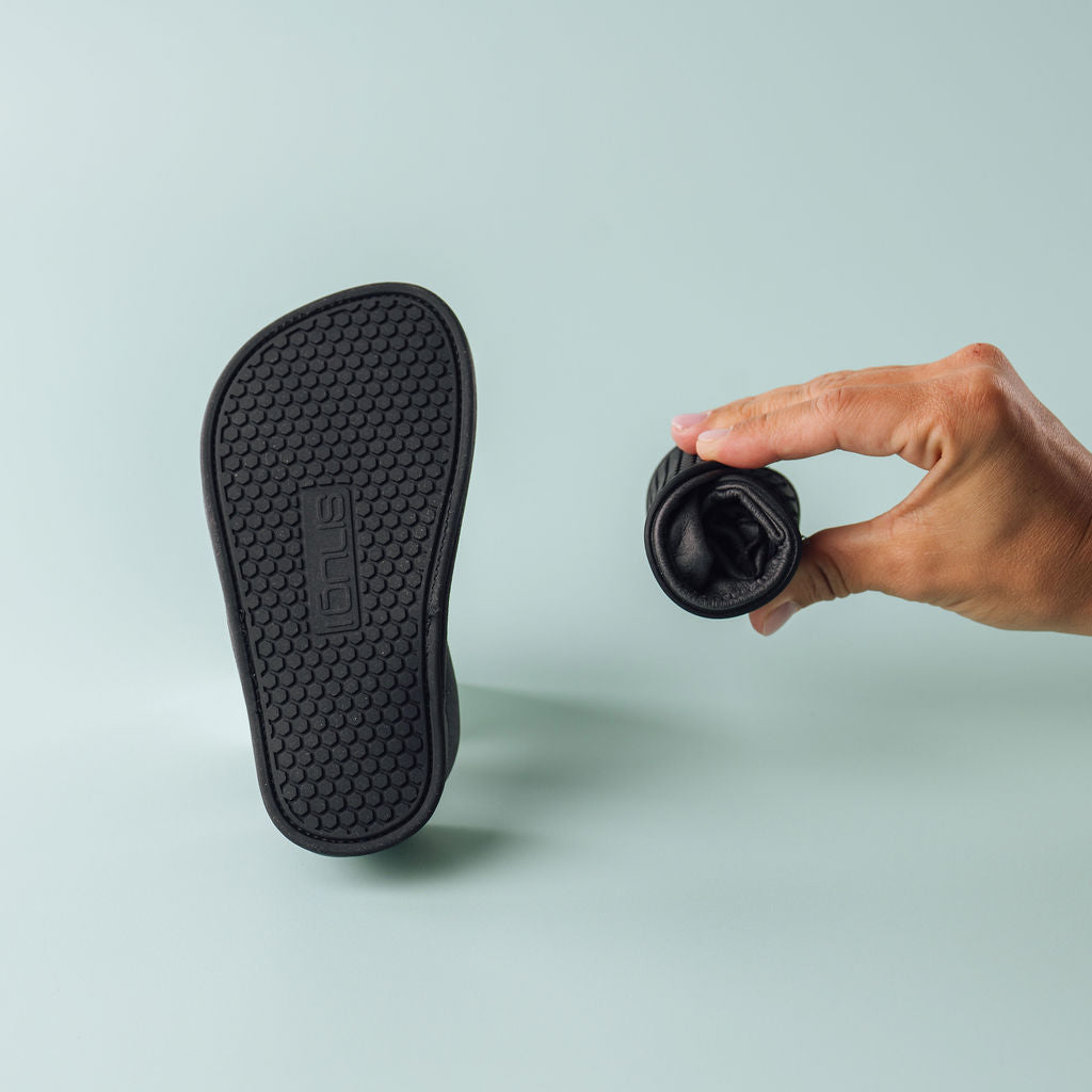 Bequeme Kinderhausschuhe Snugi KickUp mit strapazierfähiger Sohle und natürlichem Bambusfutter. Leicht, flexibel und pflegeleicht – perfekt für Kindergarten und Zuhause.